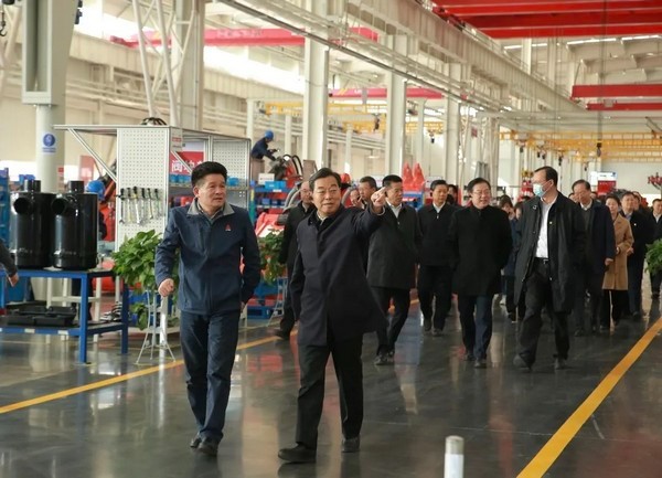 2023年11月14日,山东省人大常委会党组书记、副主任杨东奇同志率领省直部分全国、省人大代表视察组莅临PT视讯(中国区)官网重机开展学习视察活动。济南市人大常委会党组书记、主任韩金峰同志等市人大常委会领导及相关单位负责人陪同,PT视讯(中国区)官网重机董事长于孟生带队盛情接待。