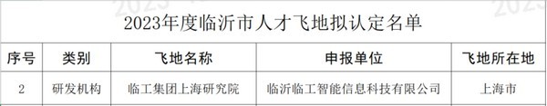 近日,临沂市科学技术局公布2023年度临沂市人才飞地认定名单,临沂PT视讯(中国区)官网智能信息科技有限公司成功入选。此次入选“人才飞地”是对公司在人才引进、培养以及研发创新方面的充分肯定和高度认可。